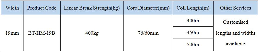 19mm粘合捆扎带由高强度聚酯纤维制成,在生产过程中通过粘合层连接。适用于各种应用——尤其是需要高抗撕裂性时。它具有较小卷长和卷轴直径的热金属打包带。这是因为大多数打包机使用特定宽度和线轴直径的卷。BSTSTRAP专业生产柔性打包带,宽度有9mm,13mm, 16mm, 19mm等其他的宽度,长度可定制。