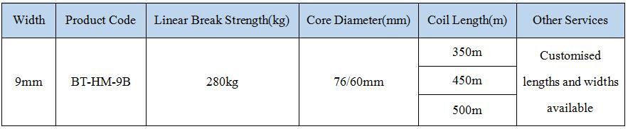 9мм Хотмелт чембер, Хотмелт чемберът е произведен от високоустойчиви полиестерни влакна, свързани чрез лепилен слой в процеса на производство. Този вид чембер изглежда като запечатан с восък и води до оптимизирана система на здравина, когато се използва с галванизирани (поцинковани) метални скоби. Подходящ е за различни приложения – особено когато се изисква висока степен на сила на скъсване. Има балиращи хотмелт чембери, които са с по-малка дължина на ролката и диаметър на шпулата. Това е така, защото повечето балиращи машини работят с ролки със специфична ширина и диаметър на шпулата. – безопасност при работа (за разлика от металните чембери)